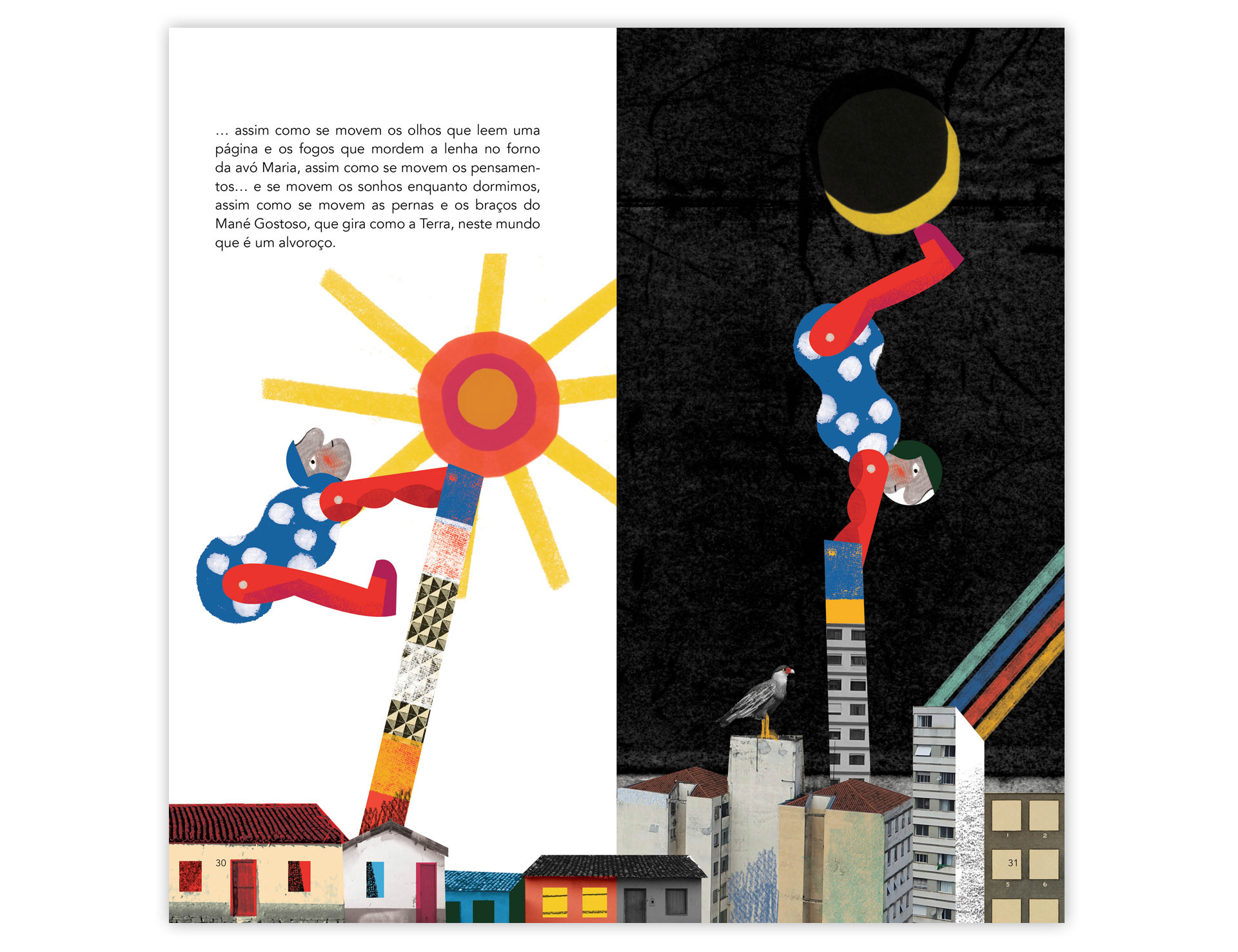 Ilustrações para o livro "Todo mundo rodopia enquanto rodopia o mundo", texto de André Gravatá. Publicado pela Editora Peirópolis.